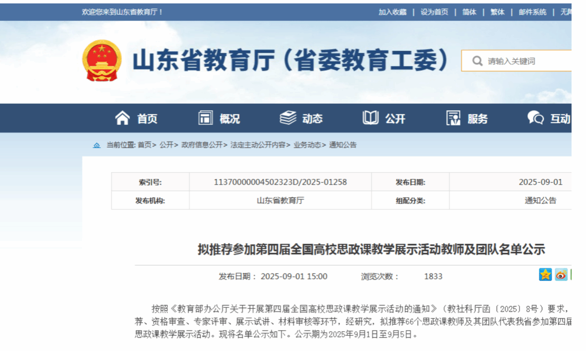 近日,山东省教育厅公布了推荐参加第四届全国高校思想政治理论课教学展示活动的名单。经过资格审核、材料评审、教学展示、培训选拔等多环节严格遴选,我校马克思主义学院教师徐子珺及其教学团队(杭丽华任负责人)凭借扎实的教学功底和创新的教学设计成功获推荐入围《习近平新时代中国特色社会主义思想概论》(本科)组的展示,充分展现了我校思政课教师的专业素养与教学风采。