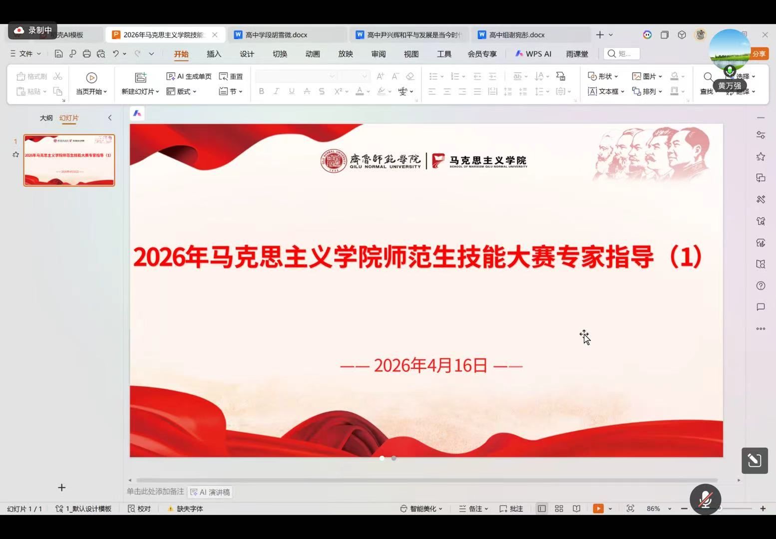 4月20日,学院第三场线上磨课会议如期举行。黄万强老师与李欣老师再次对参赛选手进行精准指导。高中组三位选手围绕《当今时代的主题》进行试讲展示,专家重点纠正课程结构、政治表述、历史观及板书设计等问题,对教学语言、教姿教态提出具体规范要求。初中组三位选手进行《提高防护能力》试讲,李欣老师针对教学设计、情境创设、语言表现力逐一点评,重点优化项目化学习结构、板书设计及口语表达节奏,助力选手提升课堂感染力与教学流畅度。